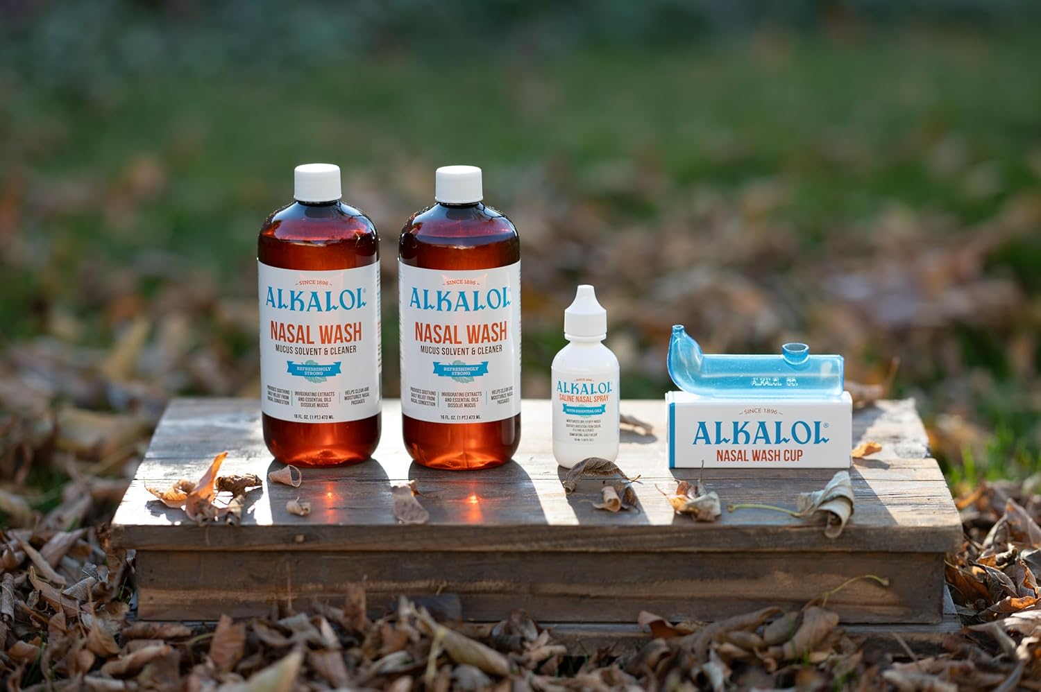Alkalol Bonus Pack - 1 Kit, 1 Nasal Wash Bottle (16 oz) & 1 Saline Nasal Spray