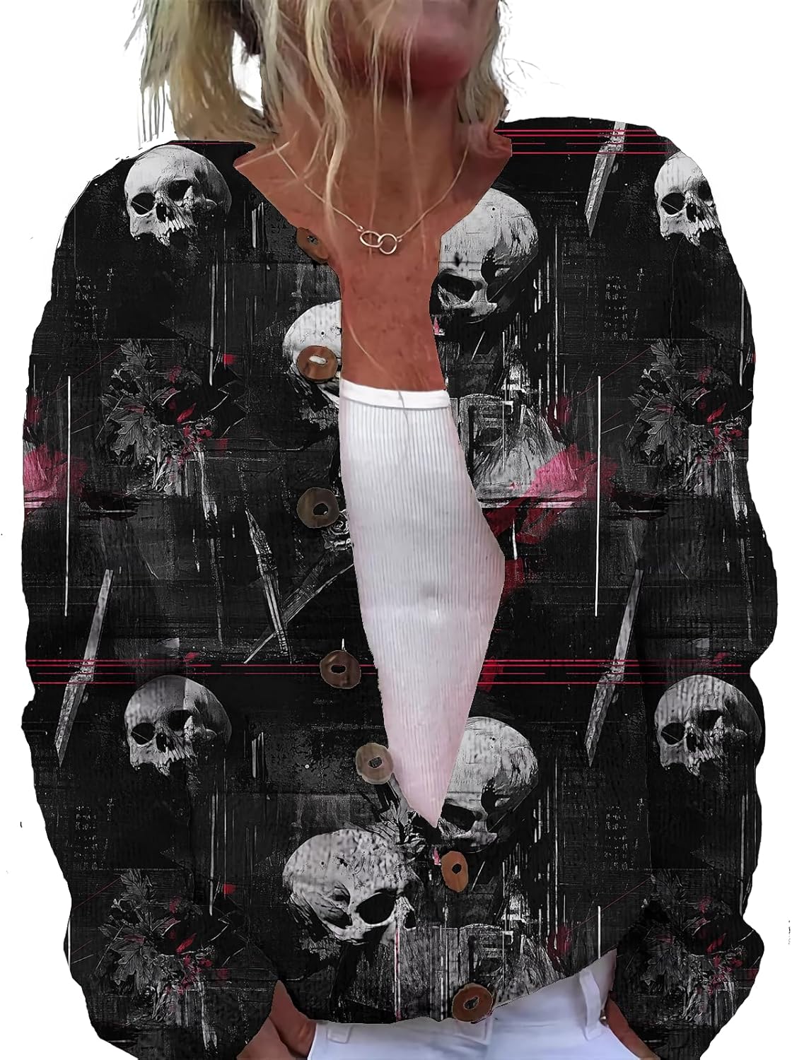 This women's long-sleeve knit top is made of soft, lightweight and comfortable fabric. It won't irritate the skin when worn alone, and it can be machine-washed without easily losing its shape. With a basic, simple and regular fit, it flatters the figure and allows for unrestricted styling. The classic button and round-neck design ensures timeless appeal, being both durable and fashionable. It can be worn as a pullover or unbuttoned as a cardigan. Paired with a necklace, it looks stylish and exquisite. It's a must-have item in the autumn wardrobe.