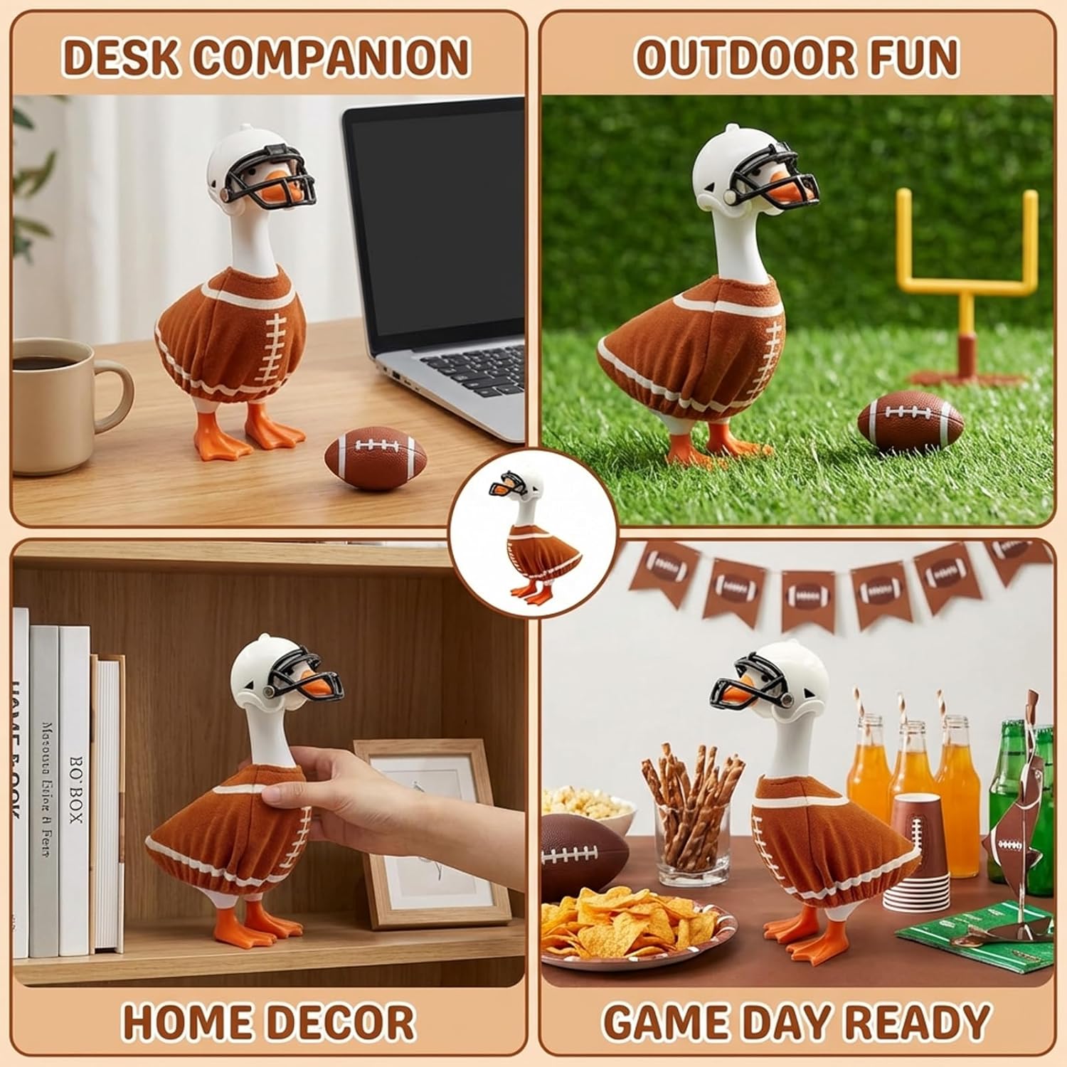 Transform your desk decor with our Desk Goose Hoodie Football Outfits, a meticulously crafted 2-piece set designed for sports enthusiasts and collectors. This collection features authentic football styling with a detailed helmet and soft jersey that perfectly fits most 7 inch desk goose figurines. The outfit combines durable materials to ensure long-lasting display quality.Constructed from high quality materials components, these miniature outfits maintain their vibrant appearance through regular handling. The authentic football design elements create an engaging display piece that captures the spirit of the game. Whether used for office decoration, sports-themed gifts, or collector displays, these outfits add character to any setting.The easy-to-install design allows for quick outfit changes without complicated setup. Each piece is sized to fit securely while preserving the integrity of your desk goose collectible. Perfect for game day celebrations, sports memorabilia collections, and social media content creation, these football outfits bring sports enthusiasm to your desktop display.